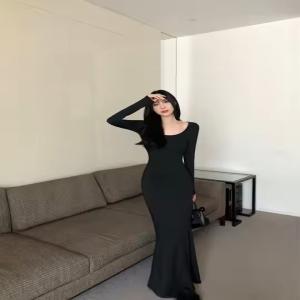 "Elevate your autumn wardrobe with our Women's Eco-Friendly Bodycon Dress. Featuring a flattering straight fit, long sleeves, and a chic ribbed texture, this black bodycon dress boasts a stylish square neckline. Perfect for casual outings, parties, or club nights, it combines comfort, sustainability, and a sleek silhouette, making it a must-have for the season."