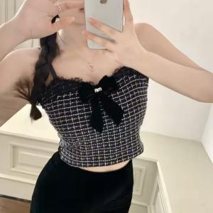 Stay stylish and comfortable with our Plaid Tank Top for women. This trendy bowknot design crop top features a chic plaid pattern and is made from soft knit fabric. With a seamless camisole construction and built-in bra pads, it offers support and a flattering fit. Perfect for casual outings, layering, or as a standalone piece, this top combine comfort and fashion effortlessly.