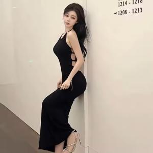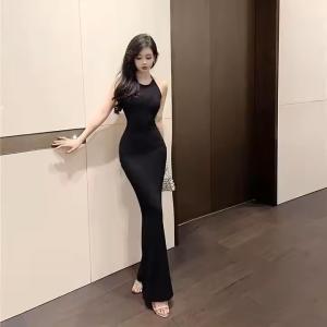 Solid Color Sleeveless Black Long Bodycon Dress Casual Women's Long Dresses Fashion Summer Slim Dress Backless